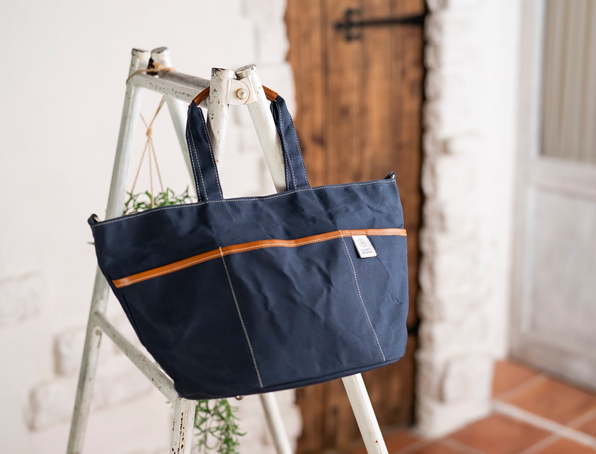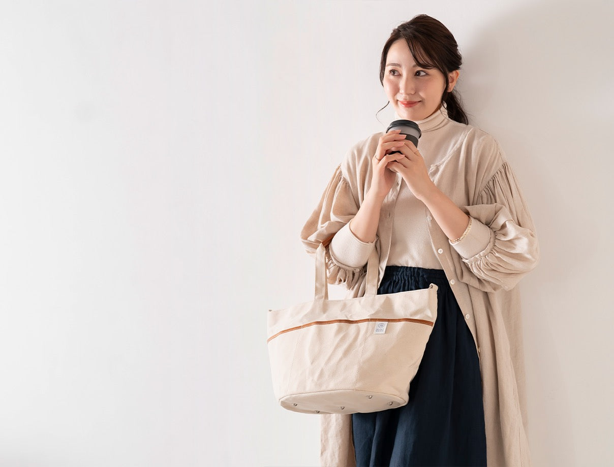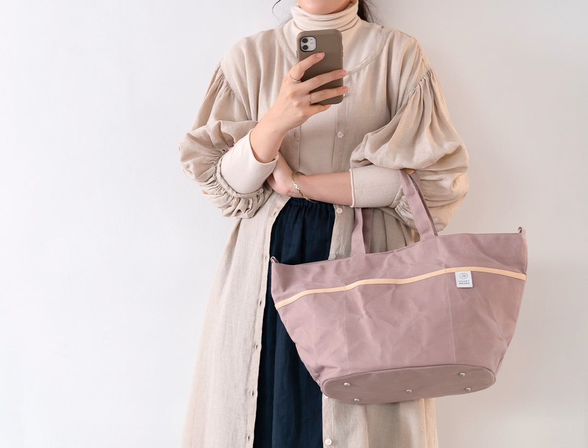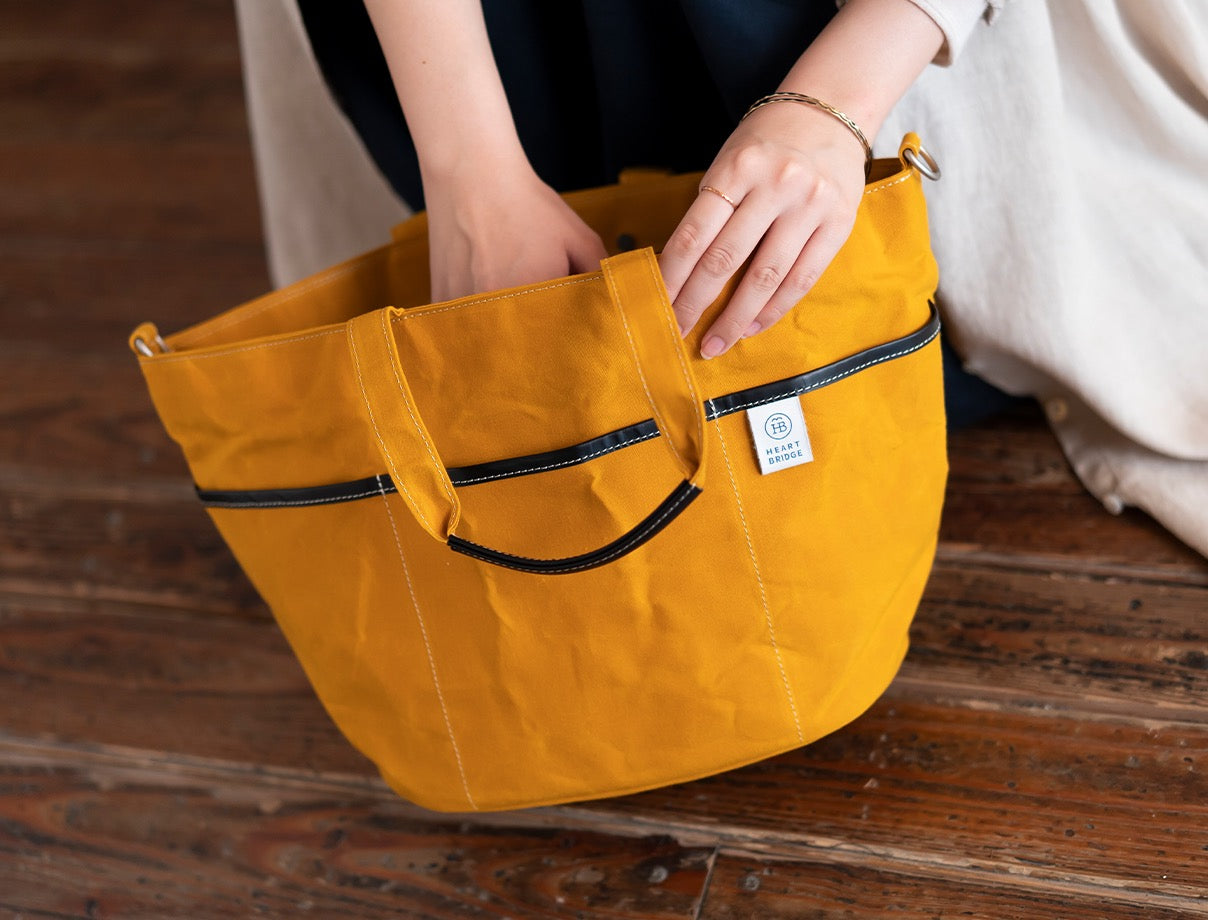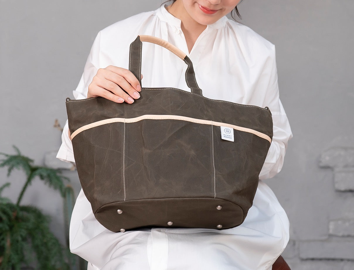 ガーデニングバッグから発想して作られた丸底トート。