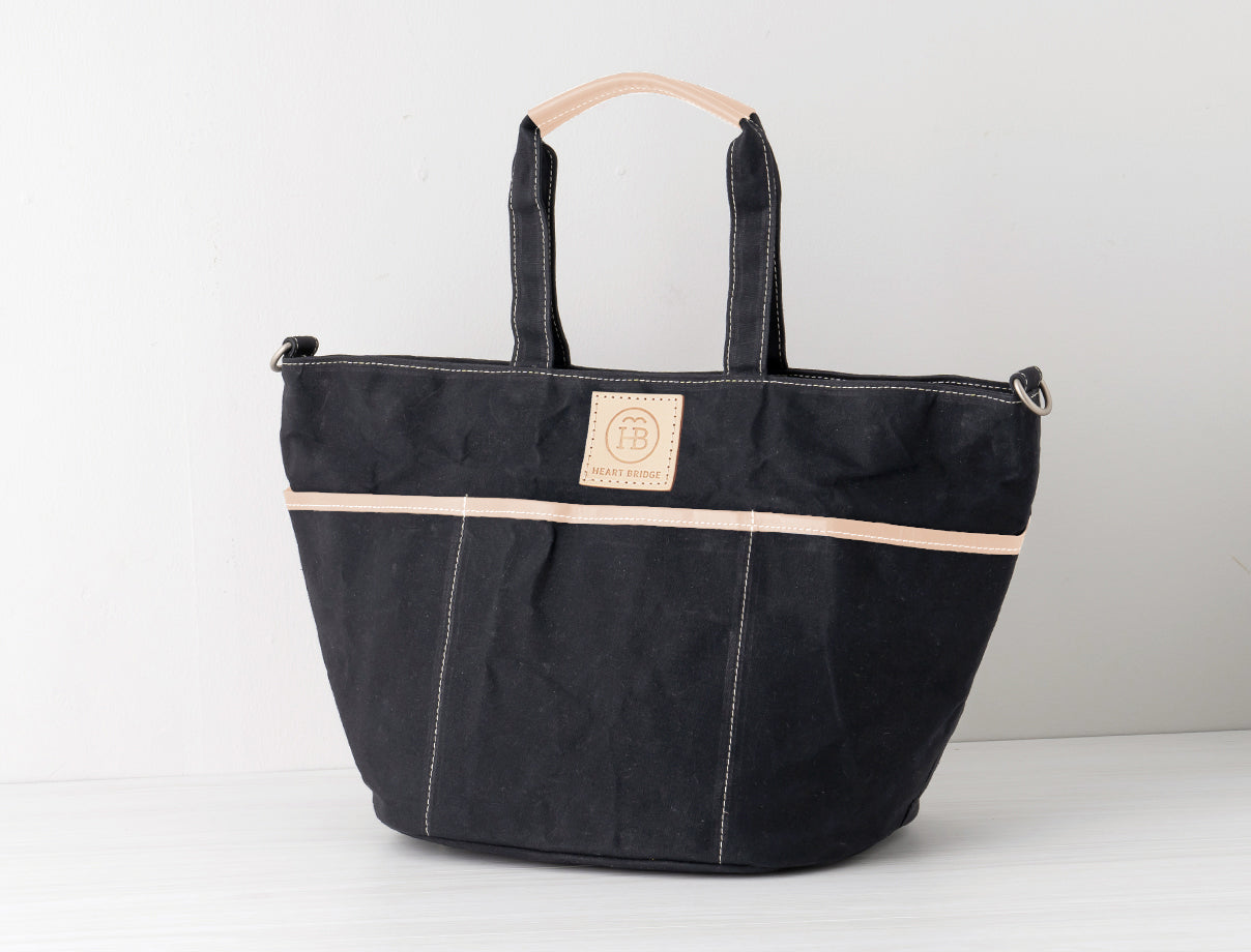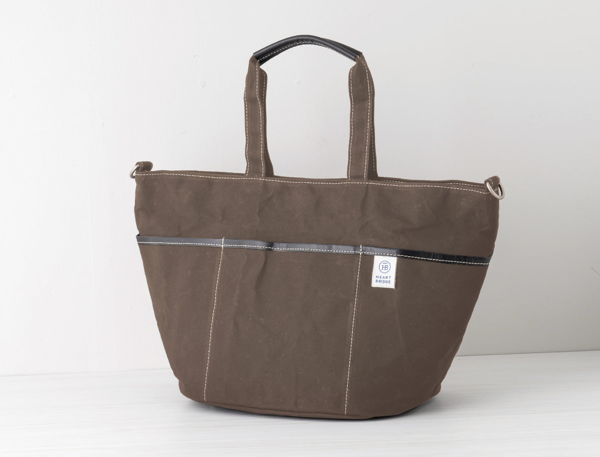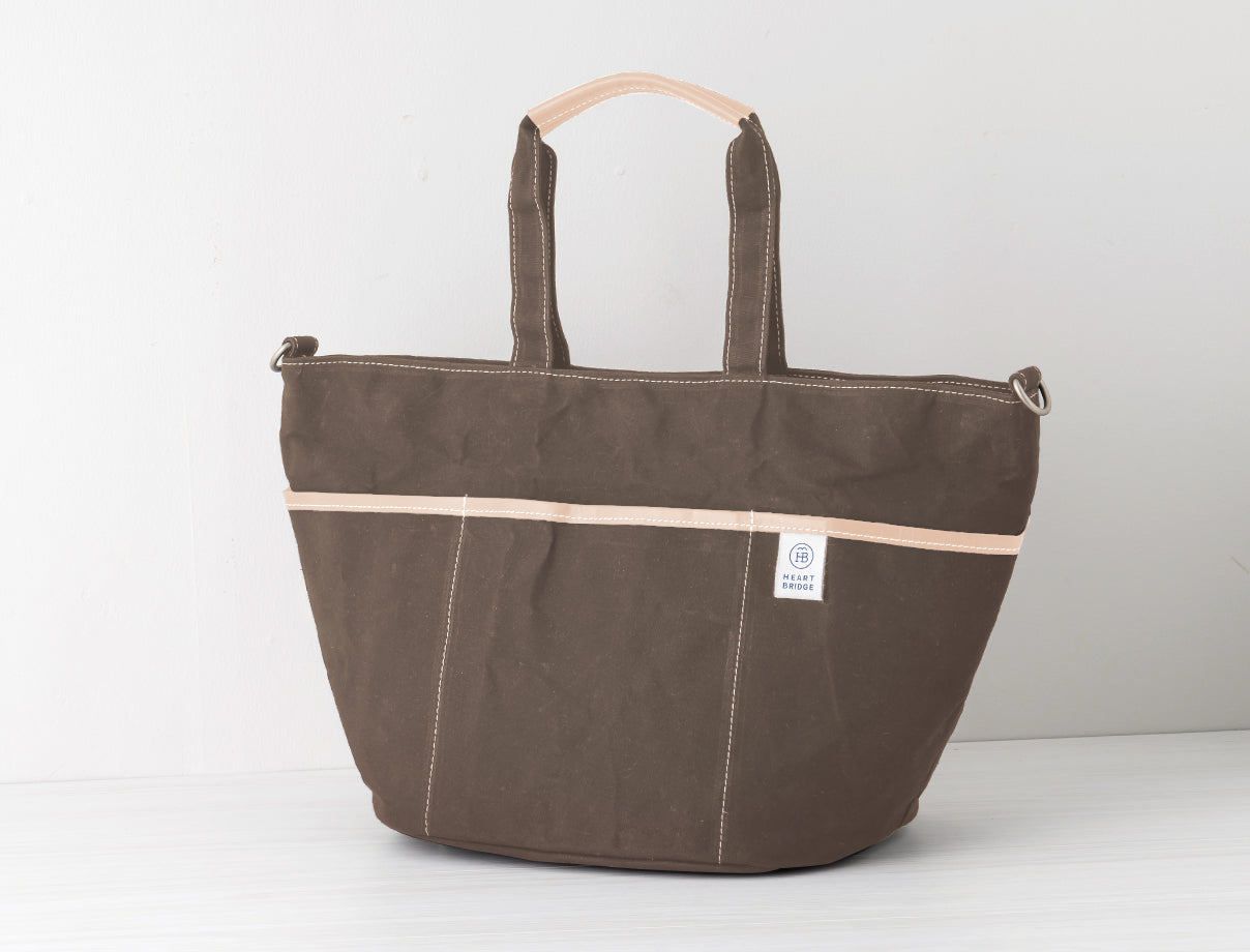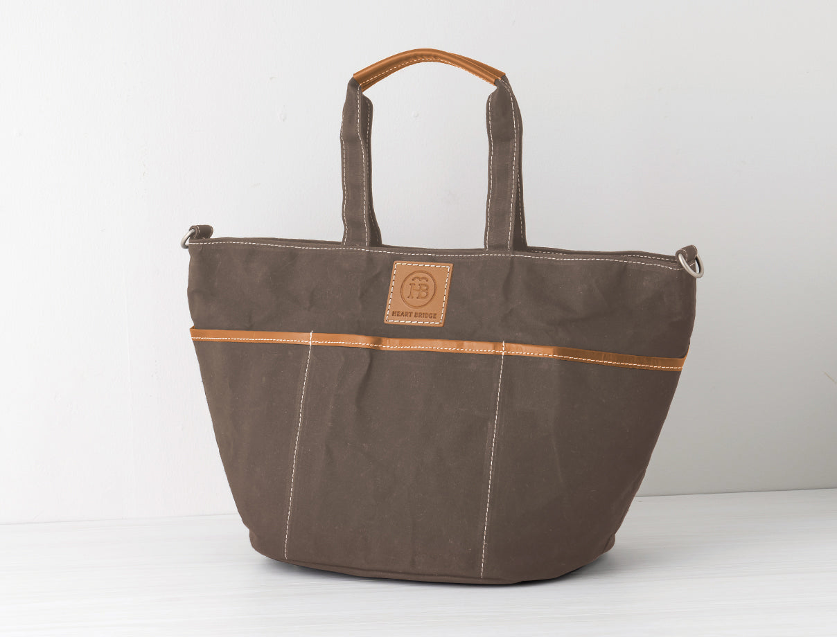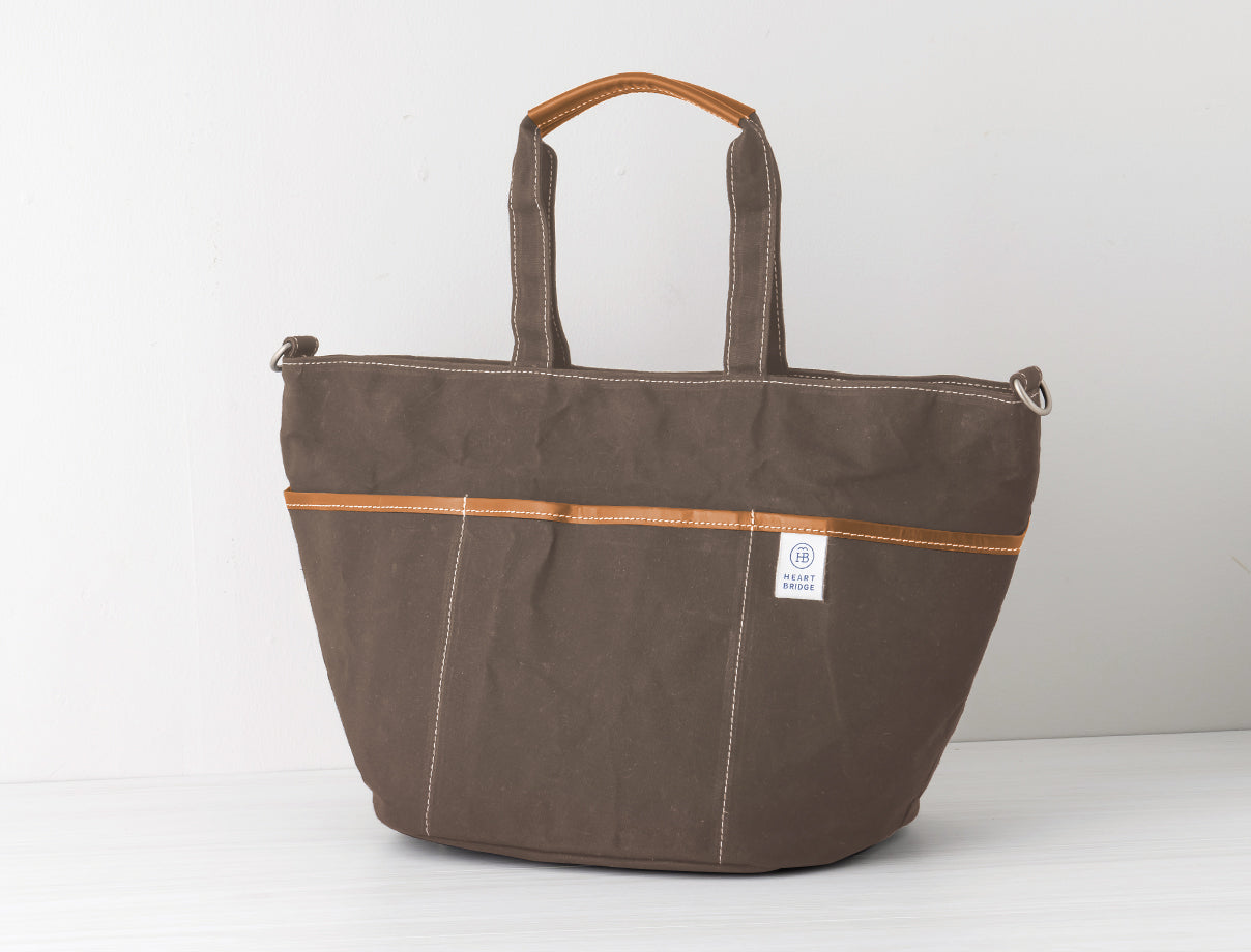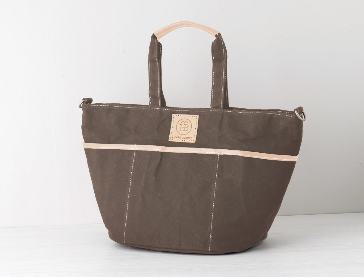 ガーデニングバッグから発想して作られた丸底トート。