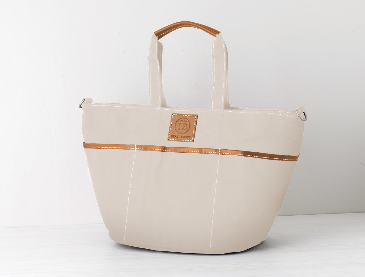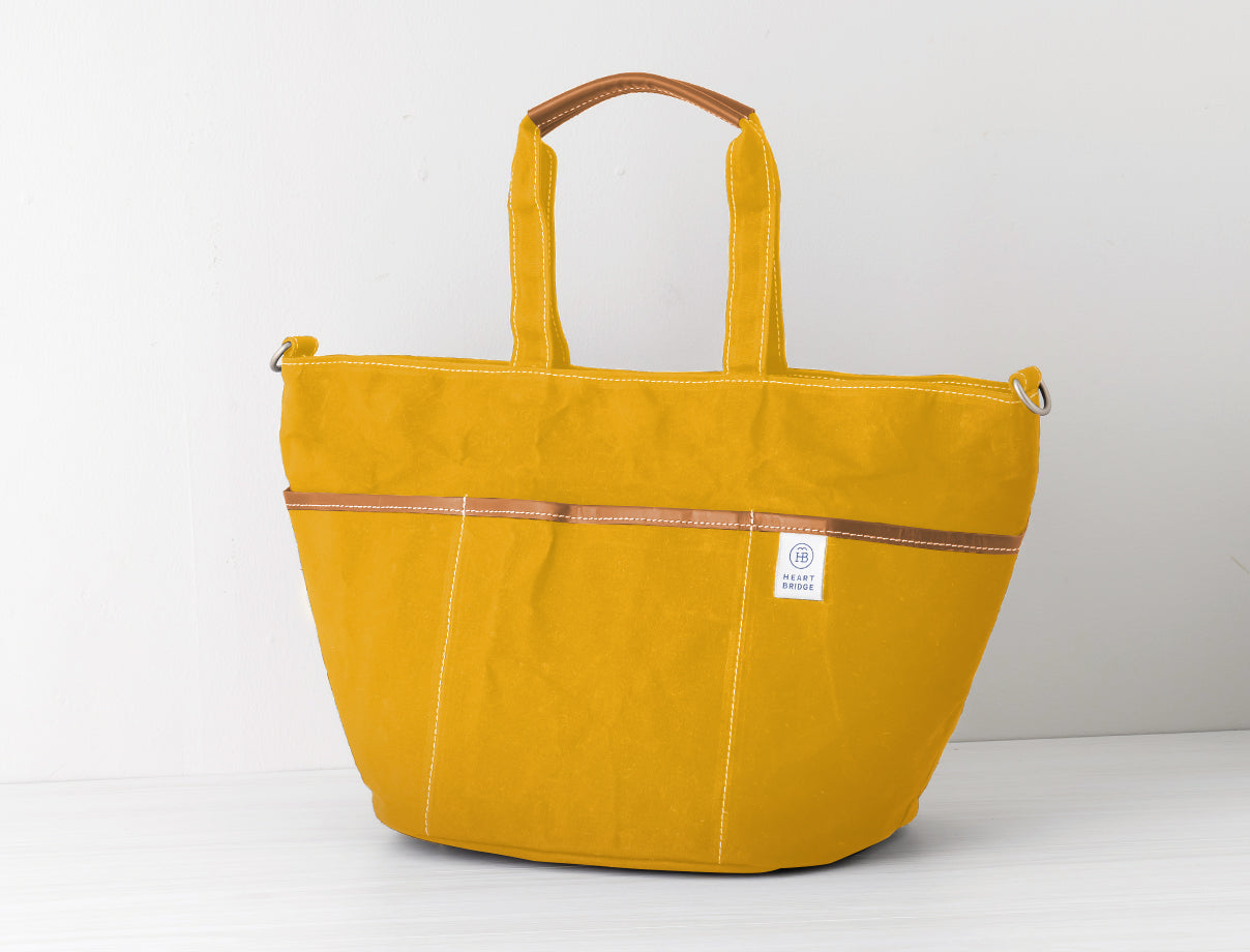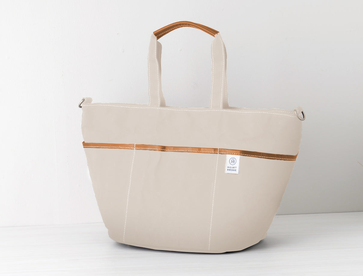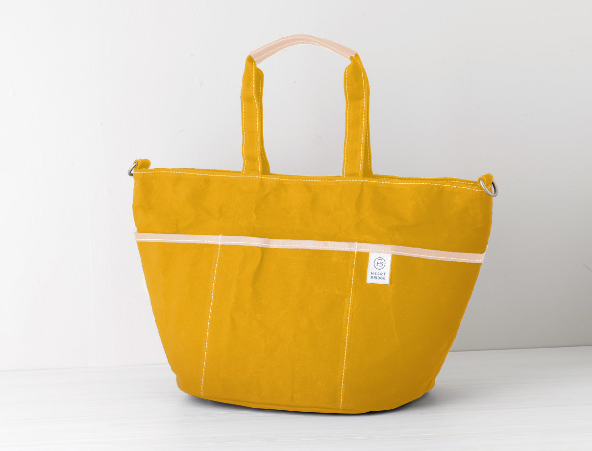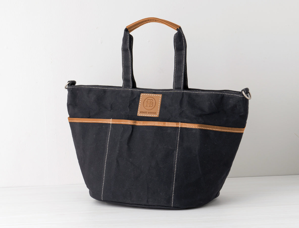 ガーデニングバッグから発想して作られた丸底トート。